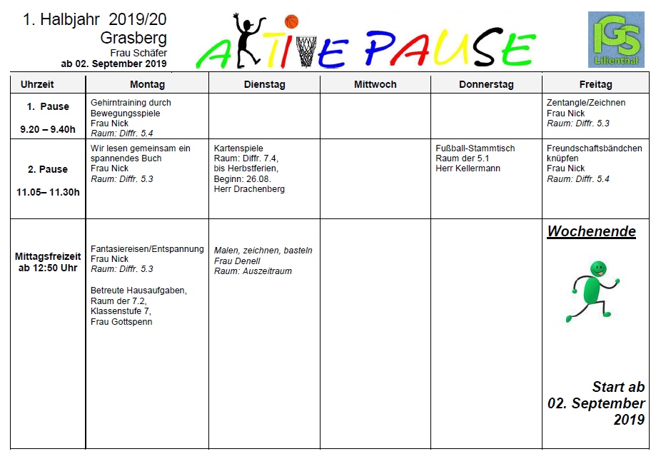 Die Angebote werden von Lehrkräften, Sozialpädagogen und externen Partnern betreut. Schülerinnen und Schüler können frei wählen, an welchen Aktivitäten sie teilnehmen möchten. Die aktive Pausengestaltung trägt zur Förderung sozialer Kompetenzen, zur Stressbewältigung und zur Verbesserung des Schulklimas bei.